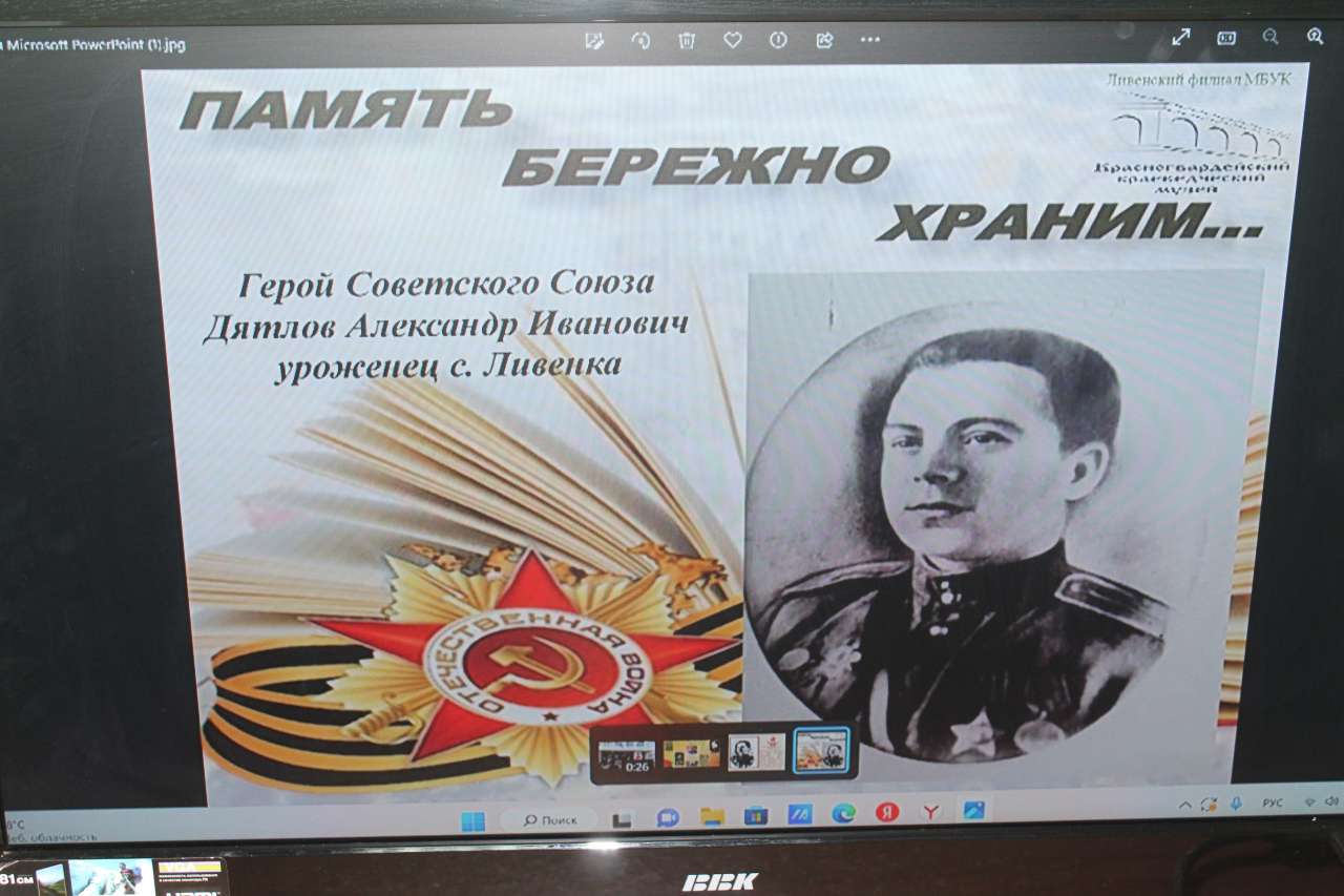 Для получателей социальных услуг в музее села Ливенка проведена лекция "Он был пулемётчиком", на которой посетители познакомились с биографией героя-земляка и узнали о его фронтовом пути.